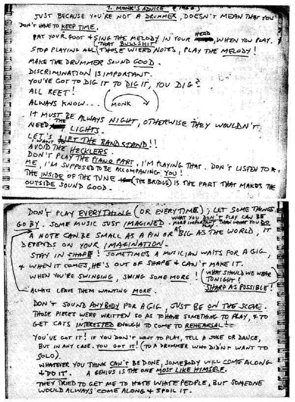 Thelonius Monk’s advice to saxophonist Steve Lacy (1960)